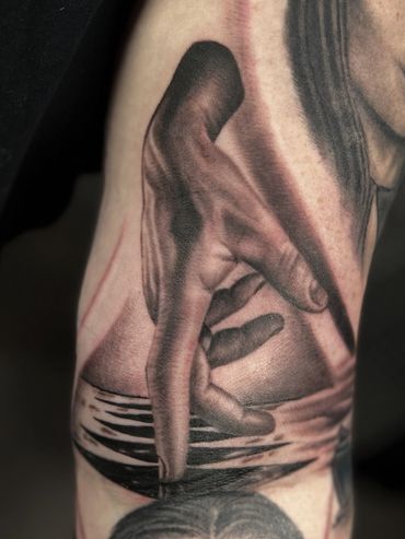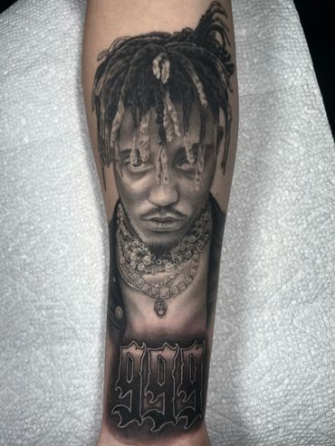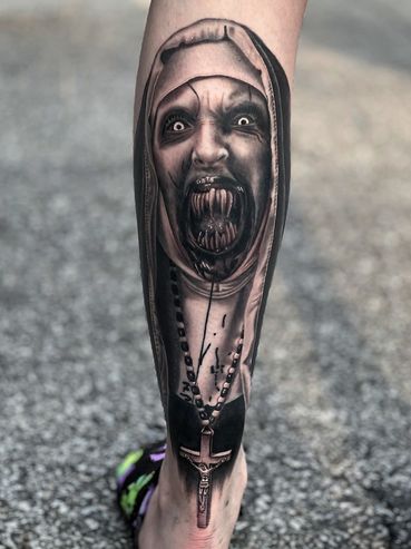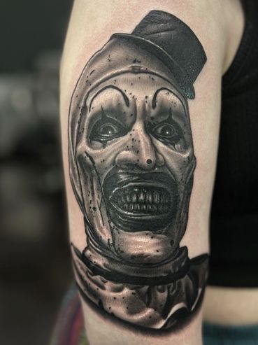 My preferred style is black and grey realism, specifically portraits, or anything spooky! I’m a big horror fan so I like to incorporate characters from movies into my pieces. I also love to do celebrity portraits! I refrain from doing animals, cover-ups, and color pieces.